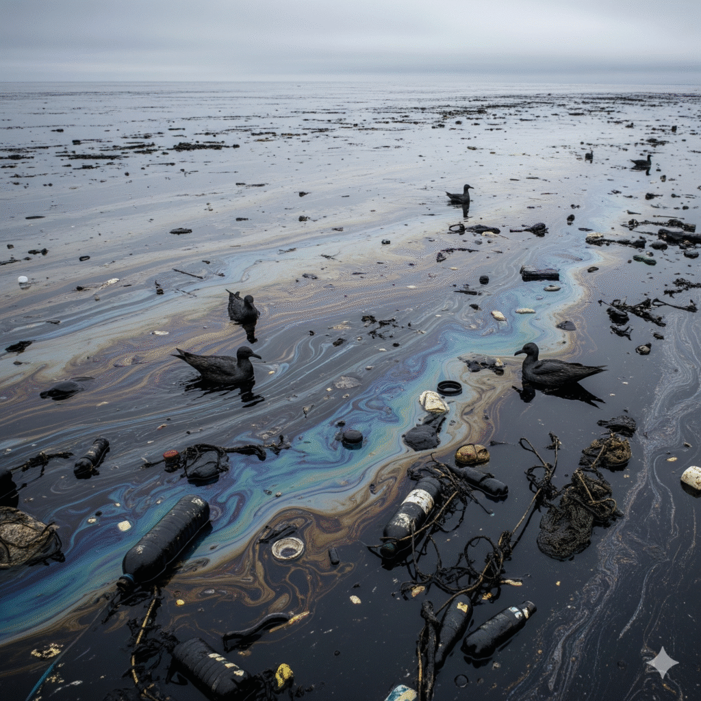 ⑤ ভাসমান তেল দ্বারা জলদূষণ: