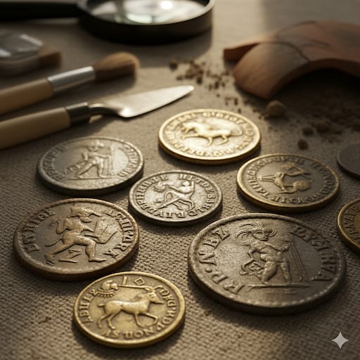 (3) উজ্জয়িনী থেকে নহপানের দু-হাজার মুদ্রা পাওয়া গেছে। প্রথম চন্দ্রগুপ্তের লক্ষ্মীদেবীর মূর্তি সংবলিত মুদ্রা, সমুদ্রগুপ্তের বীণাবাদনরত মূর্তি সংবলিত মুদ্রা, পাল আমলের নারায়ণী মুদ্রা, চোলদের স্বর্ণমুদ্রা ক্যাশু প্রভৃতির ঐতিহাসিক গুরুত্ব অসীম।